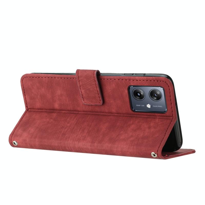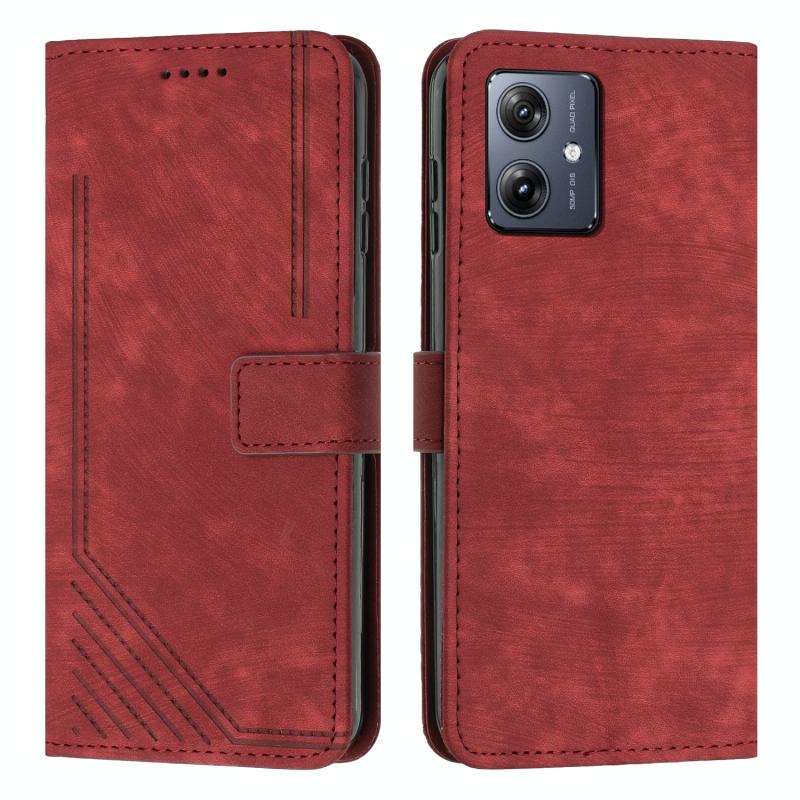For Motorola Moto G54 Skin Feel Stripe Pattern Leather Phone Case with Lanyard(Red)