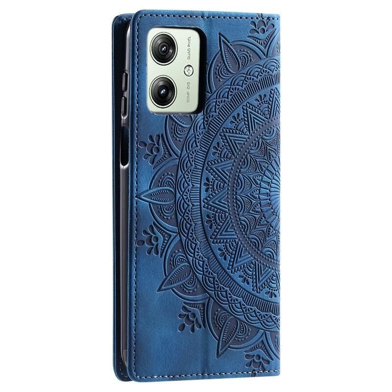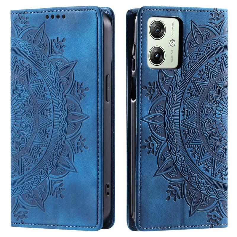 Για Motorola Moto G54 Totem ανάγλυφη μαγνητική δερμάτινη θήκη τηλεφώνου (μπλε)
