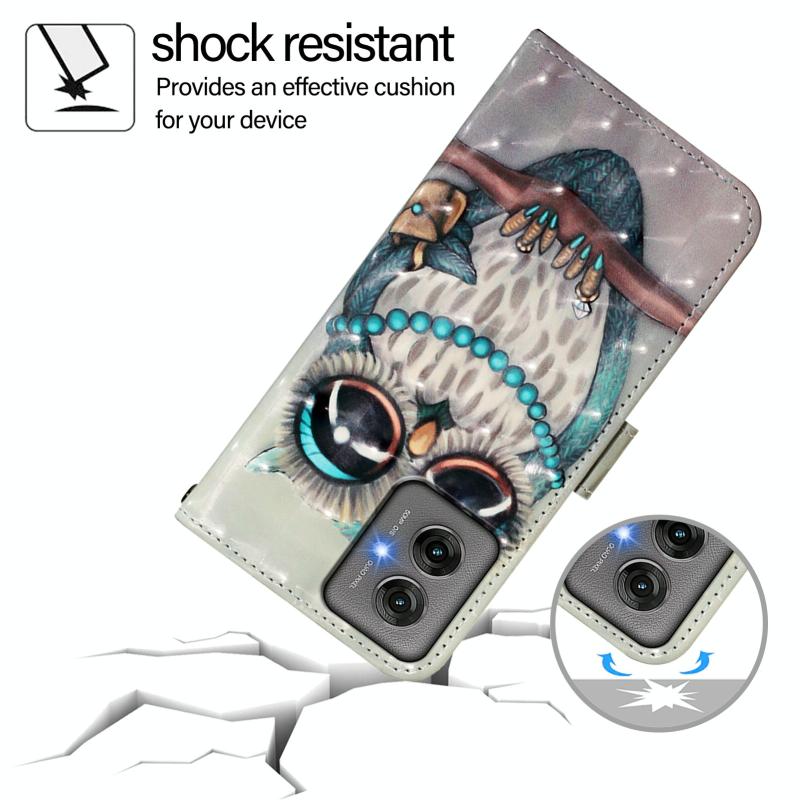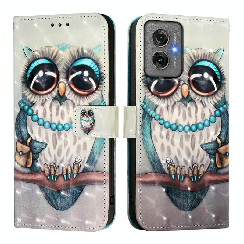 For Motorola Moto G55 3D Painting Horizontal Flip Leather Phone Case(Grey Owl)