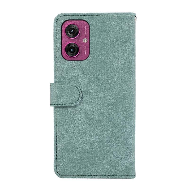 Θήκη τηλεφώνου δερμάτινη με μαγνητικό κλείσιμο και προστασία RFID για Motorola Moto G55 5G ABEEL, με σχέδιο Color Block (Ροζ-Κυανό)