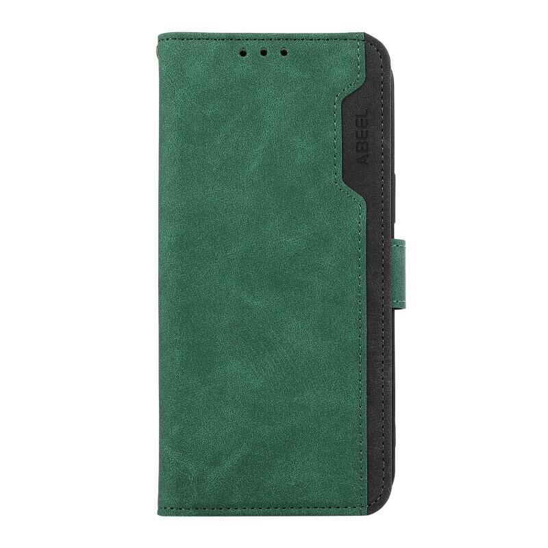 Θήκη τηλεφώνου δερμάτινη με μαγνητικό κλείσιμο και προστασία RFID για Motorola Moto G55 5G ABEEL, με σχέδιο Color Block (Ροζ-Κυανό)