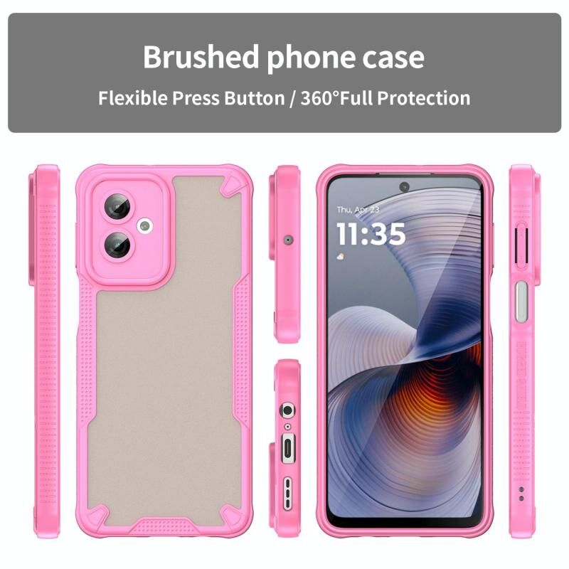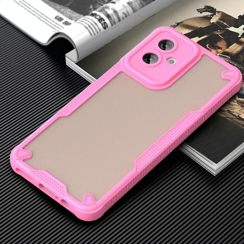 Θήκη κινητού τηλεφώνου για Motorola Moto G55 5G, υβριδική από PC και TPU, με γυαλιστερή επιφάνεια (ρόζ)