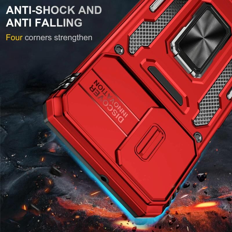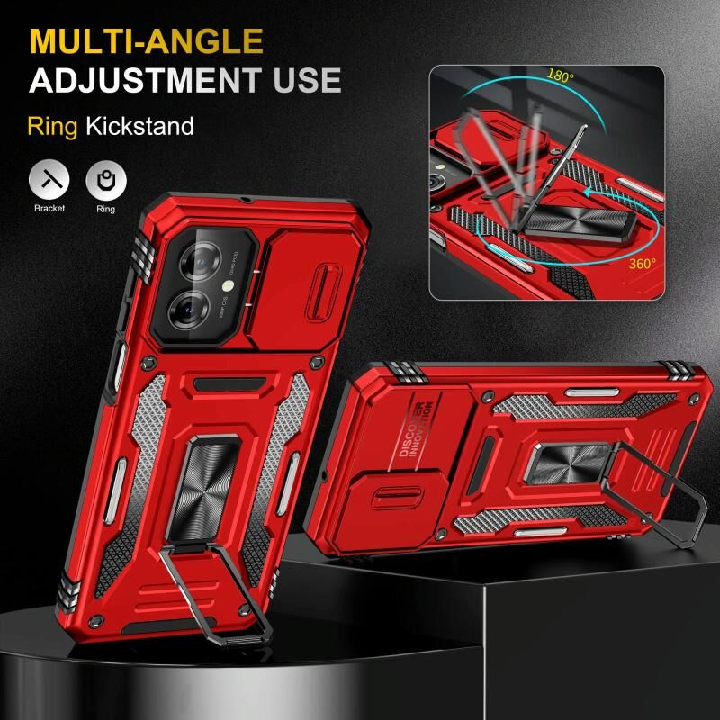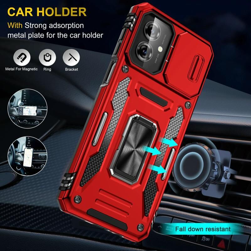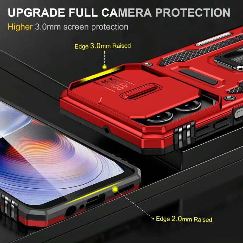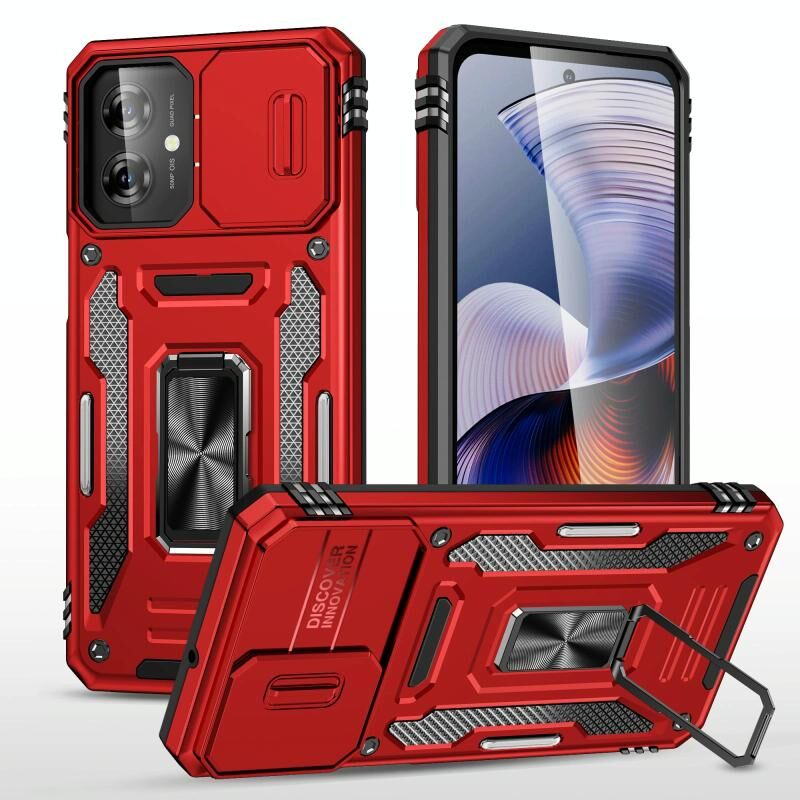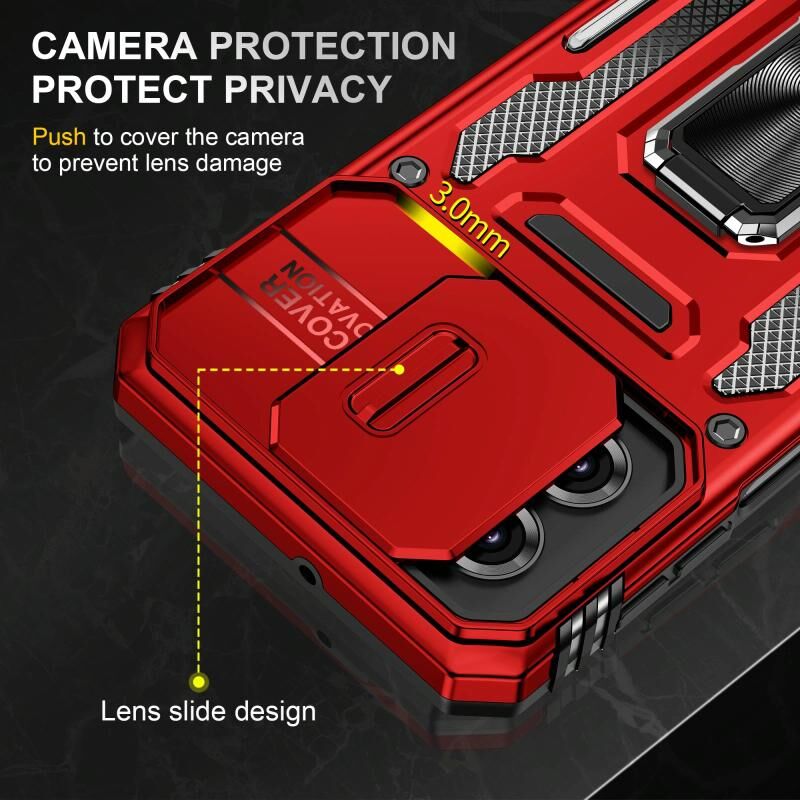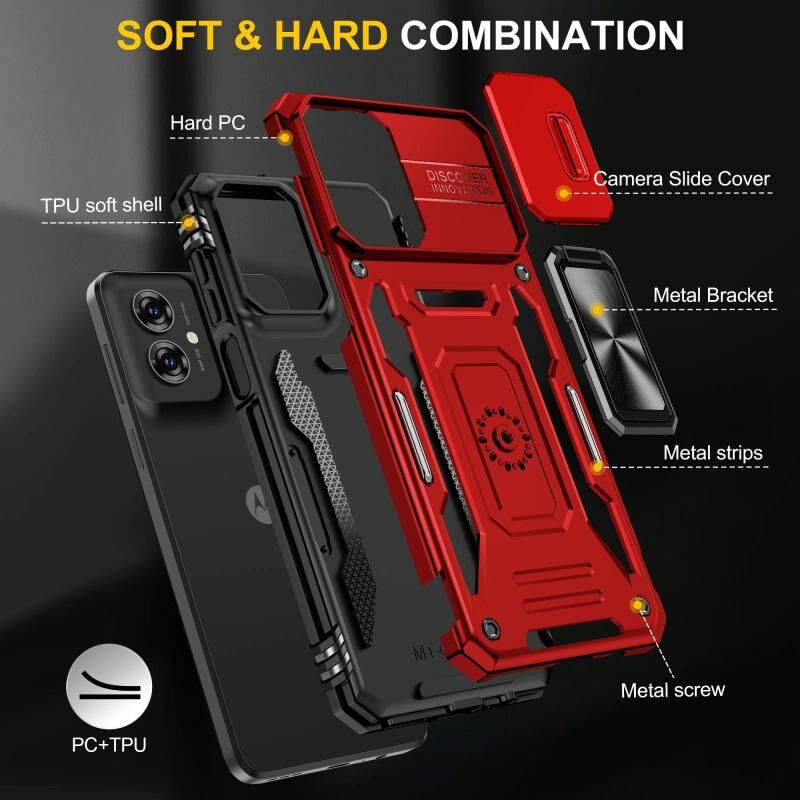 Θήκη κινητού τηλεφώνου Motorola Moto G55 5G Armor PC + TPU με προστασία κάμερας (Κόκκινο)