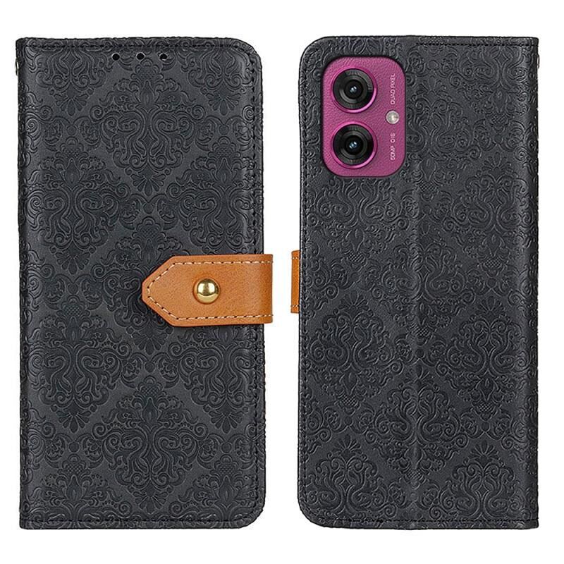 Για Motorola Moto G55 5G Ευρωπαϊκή Floral ανάγλυφο Flip δερμάτινη θήκη τηλεφώνου (μαύρο)