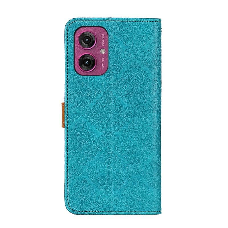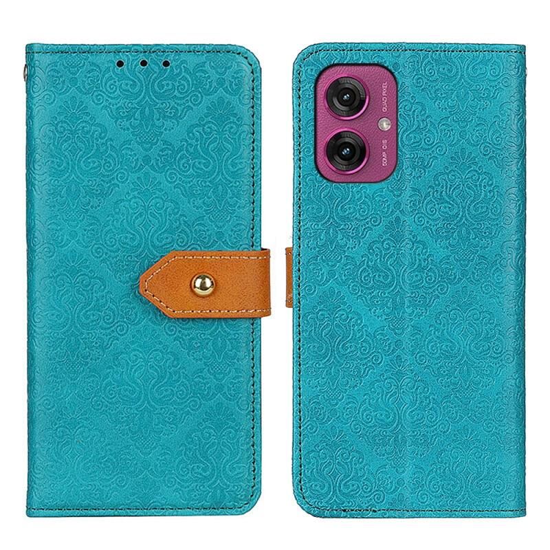 Για Motorola Moto G55 5G Ευρωπαϊκή Floral ανάγλυφο Flip δερμάτινη θήκη τηλεφώνου (μπλε)