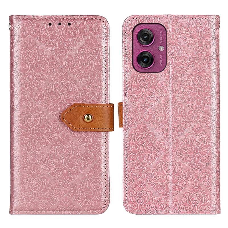 Για Motorola Moto G55 5G Ευρωπαϊκή Floral ανάγλυφο Flip δερμάτινη θήκη τηλεφώνου (ροζ)