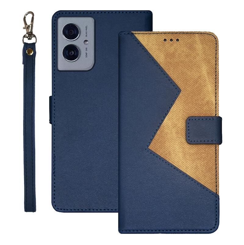 Για Motorola Moto G55 5G idewei Δερμάτινη Θήκη Τηλεφώνου Διχρωμίας (Μπλε) (Μπλε)