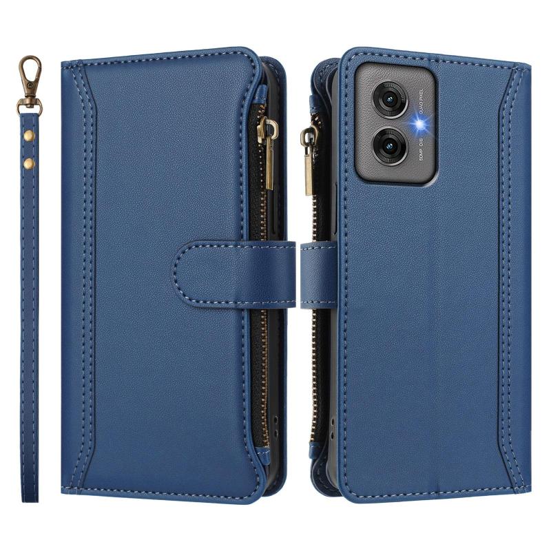 For Motorola Moto G55 5G Magnetic Closure 9 Card Slots Zipper Leather Case with Hand Strap(Dark Blue)