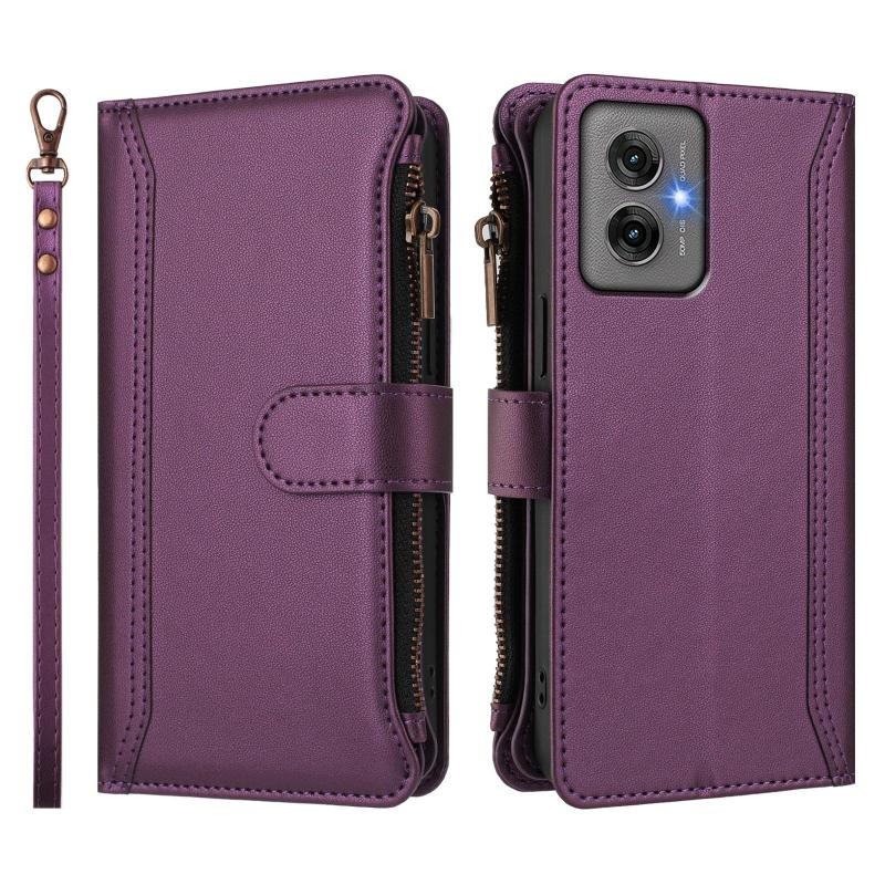 For Motorola Moto G55 5G Magnetic Closure 9 Card Slots Zipper Leather Case with Hand Strap(Purple)