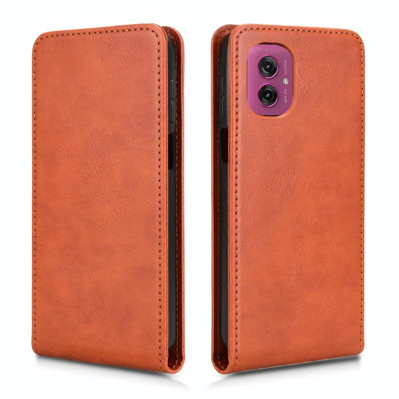 For Motorola Moto G55 5G Magnetic Vertical Flip Leather Phone Case(Brown)