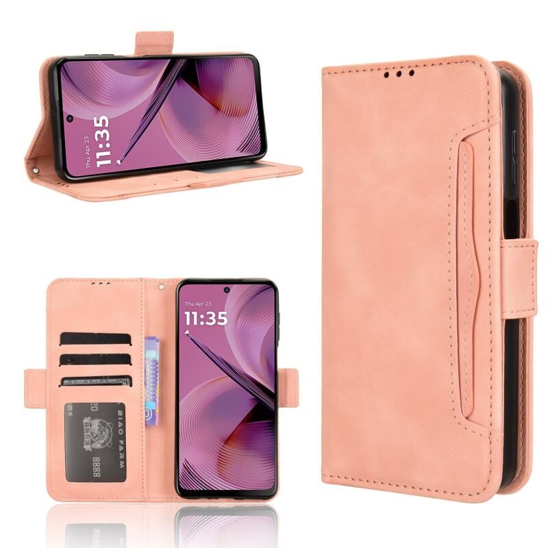 Θήκη τηλεφώνου δερμάτινη με υφή μοσχαριού και θήκες καρτών για Motorola Moto G55 5G (Ροζ)