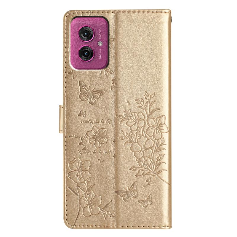 For Motorola Moto G55 Butterflies and Flowers Leather Phone Case(Gold)