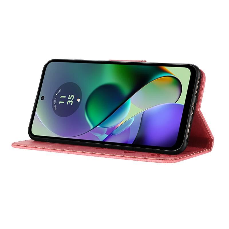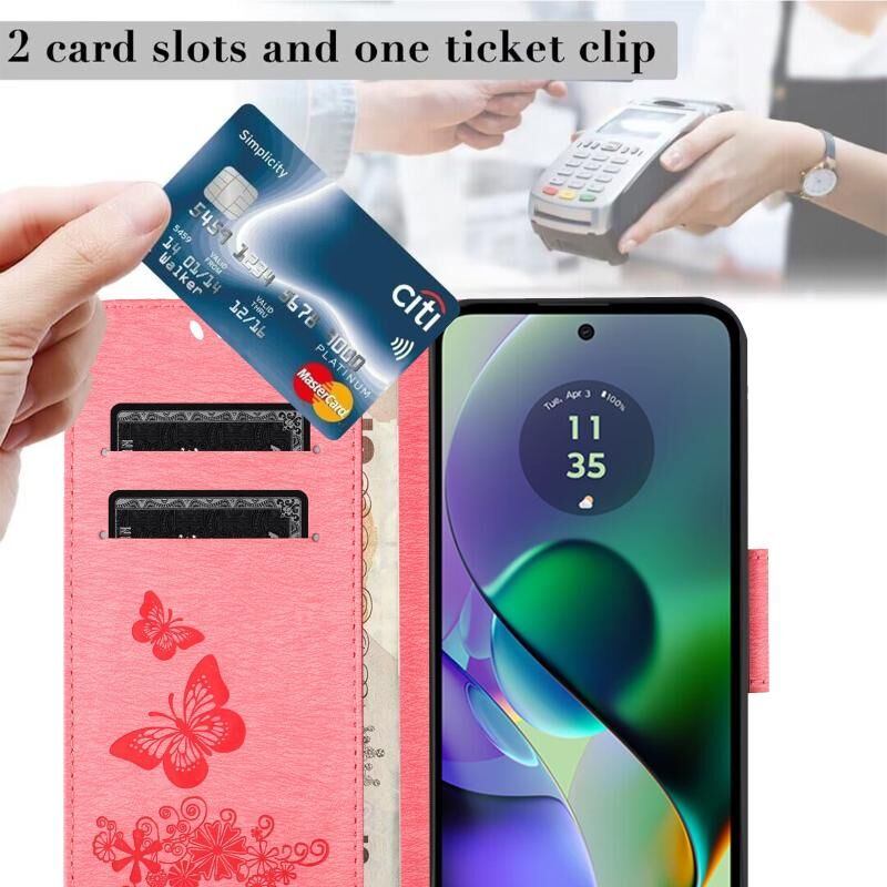 Θήκη τηλεφώνου από δέρμα με ανάγλυφο σχέδιο πεταλούδας για Motorola Moto G55 (Μωβ)