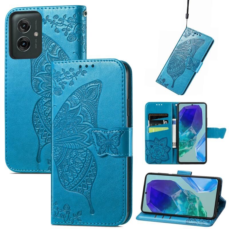 Θήκη τηλεφώνου δερμάτινη ανάγλυφη με σχέδιο πεταλούδας και λουλουδιών για Motorola Moto G55 (Μαύρο)