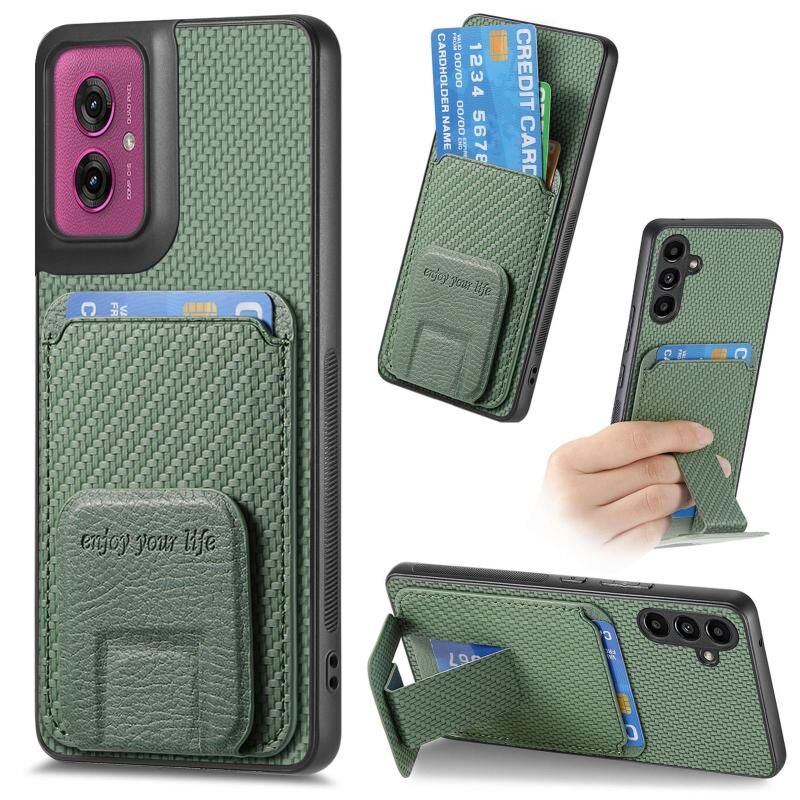 Θήκη τηλεφώνου για Motorola Moto G55 από ανθρακονήματα με κάρτες και βάση στήριξης (πράσινο)