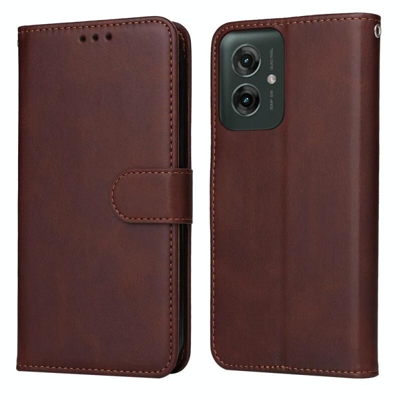 Θήκη τηλεφώνου δερμάτινη, τύπου flip, με υφή μοσχαρίσιου δέρματος για Motorola Moto G55 Classic (Καφέ)