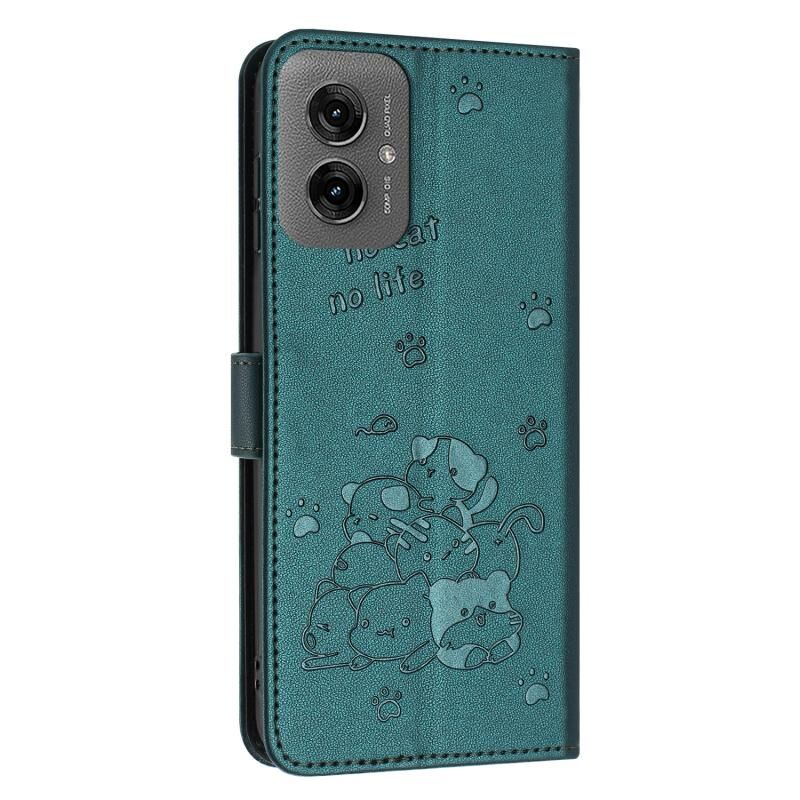 Θήκη δέρματος τηλεφώνου με ανάγλυφο γατάκι για Motorola Moto G55 με κορδόνι (Μωβ)