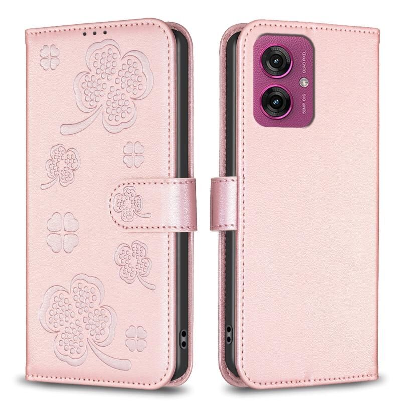 Για Motorola Moto G55 τετράφυλλο ανάγλυφη δερμάτινη θήκη τηλεφώνου (ροζ)