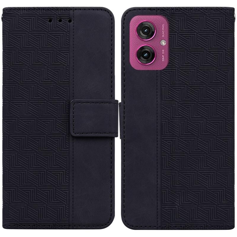 Για Motorola Moto G55 Γεωμετρική ανάγλυφη δερμάτινη θήκη τηλεφώνου (Μαύρο)