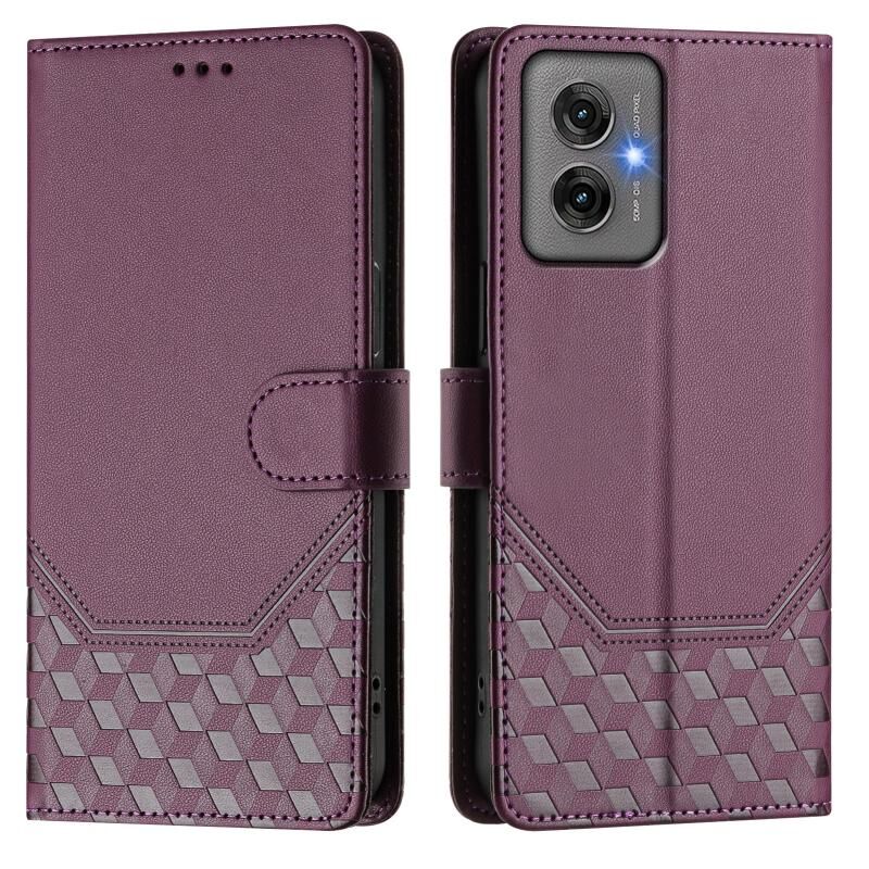 Για Motorola Moto G55 Honeycomb ανάγλυφο RFID δερμάτινη θήκη τηλεφώνου (Violet)