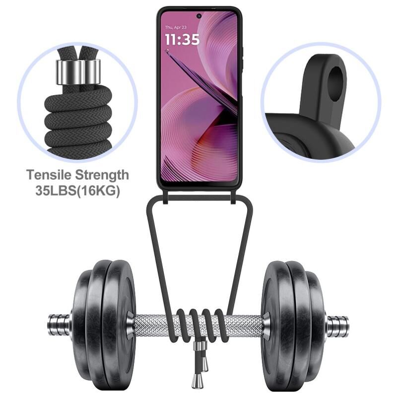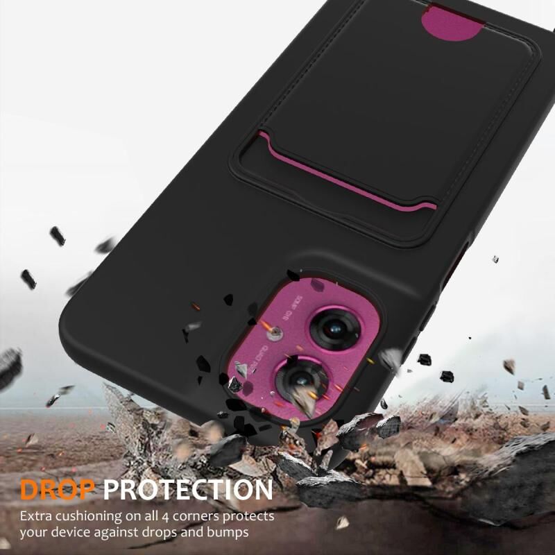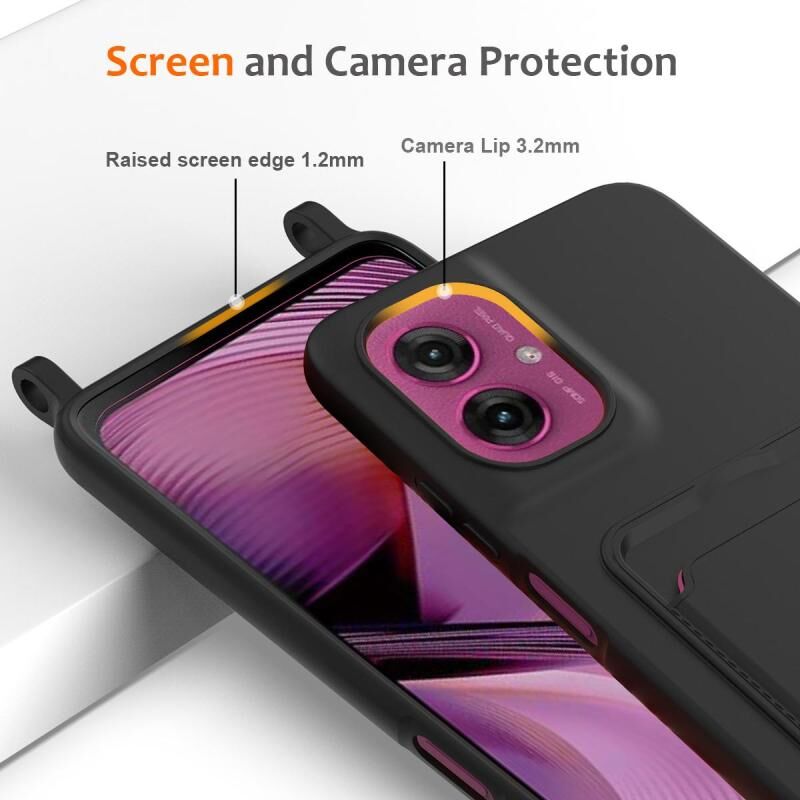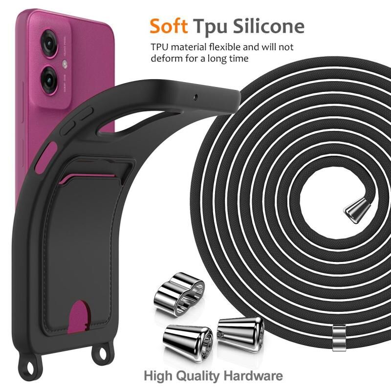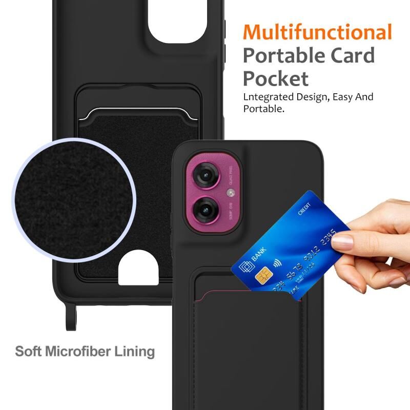 For Motorola Moto G55 Integrated Card Bag Solid Color Liquid Silicone Phone Case with Lanyard(Black)