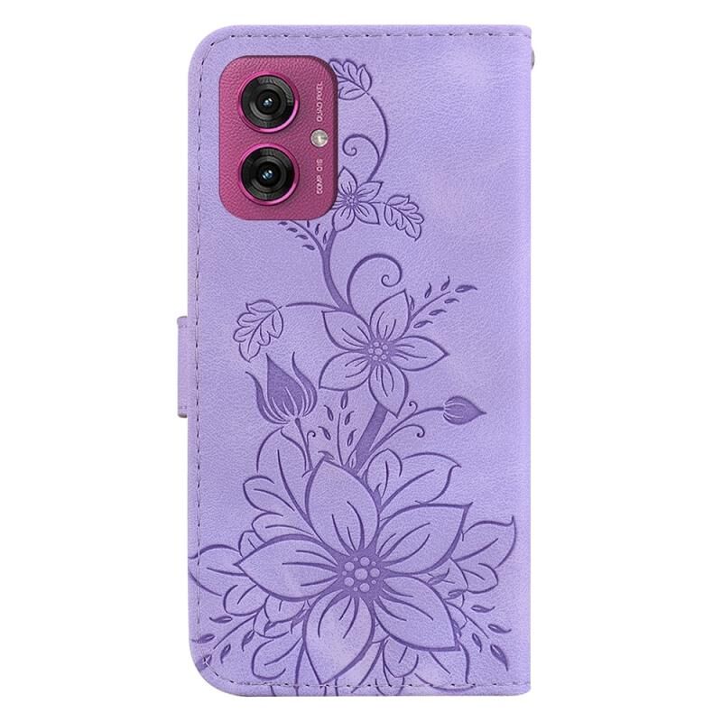 Για Motorola Moto G55 Lily ανάγλυφη δερμάτινη θήκη τηλεφώνου (Μωβ)