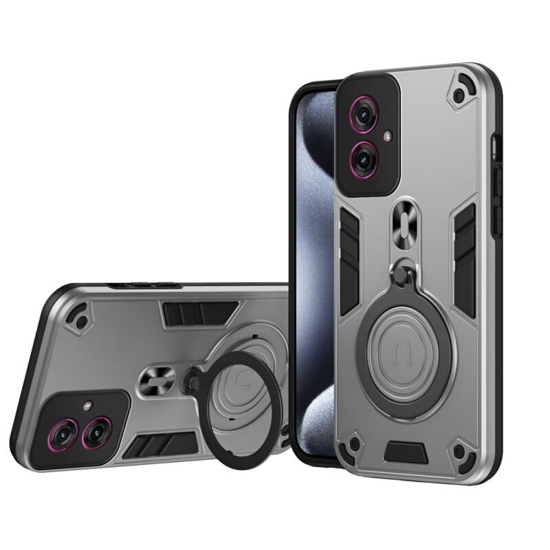 Για Motorola Moto G55 Μεταλλικό δαχτυλίδι 360 μοιρών περιστρεφόμενη θήκη τηλεφώνου PC Hybrid TPU (ασημί γκρι)