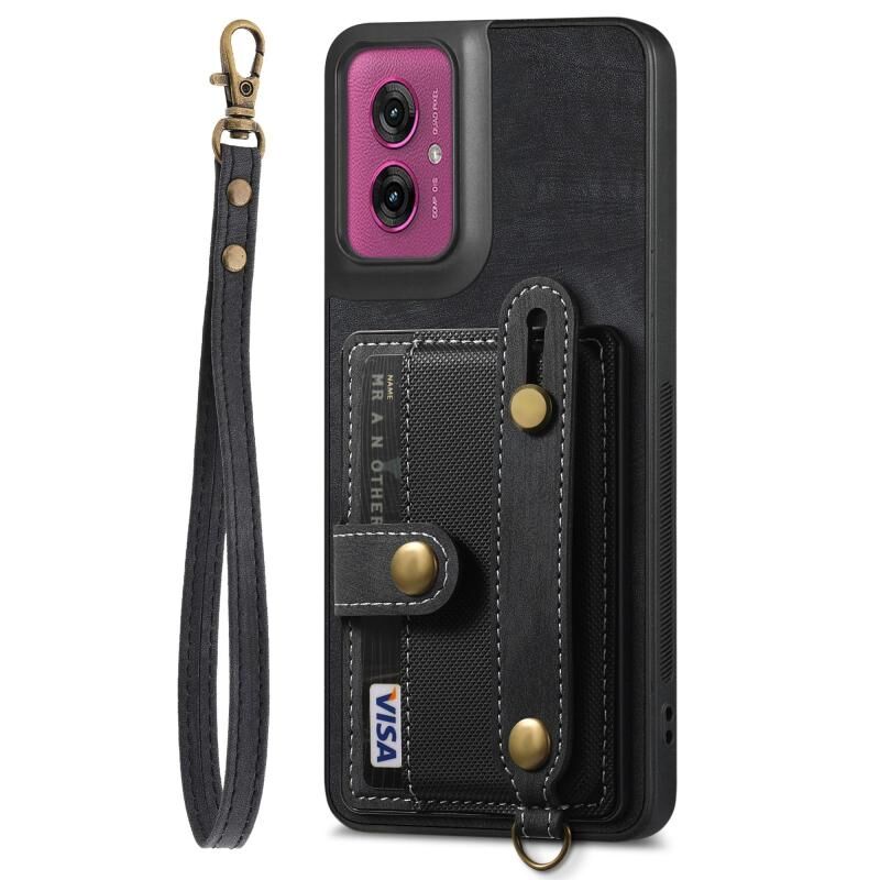 For Motorola Moto G55 Retro Cross Wristband Wallet Leather Back Phone Case(Black)