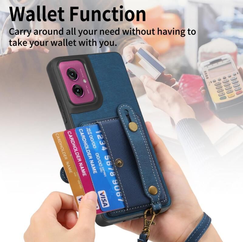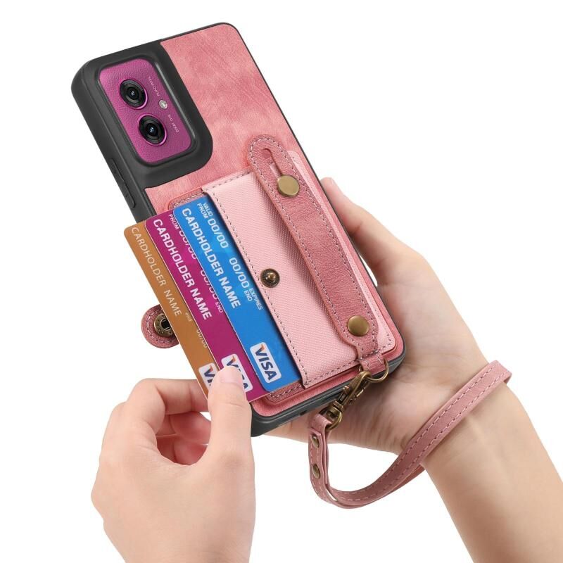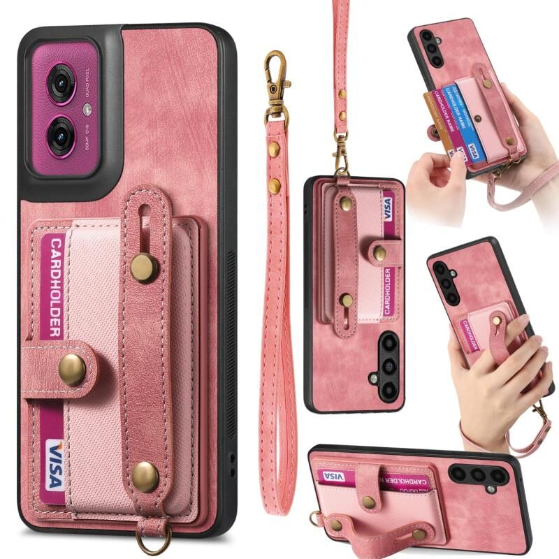 For Motorola Moto G55 Retro Cross Wristband Wallet Leather Back Phone Case(Pink)