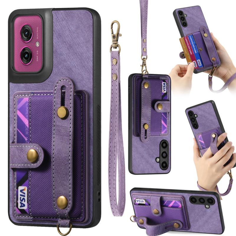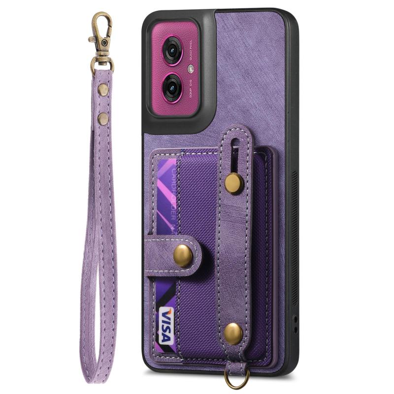 For Motorola Moto G55 Retro Cross Wristband Wallet Leather Back Phone Case(Purple)