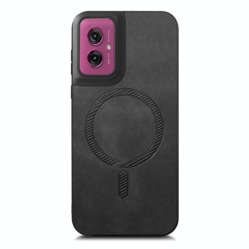 Θήκη κινητού τηλεφώνου για Motorola Moto G55 Retro Magsafe Μαγνητική PU Πίσω Κάλυμμα (Μαύρο)