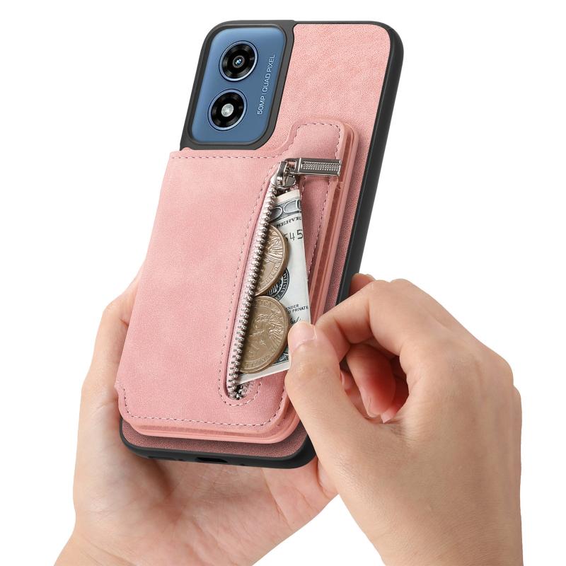For Motorola Moto G55 Retro MagSafe Zipper Wallet Card Bag Back Phone Case(Pink)