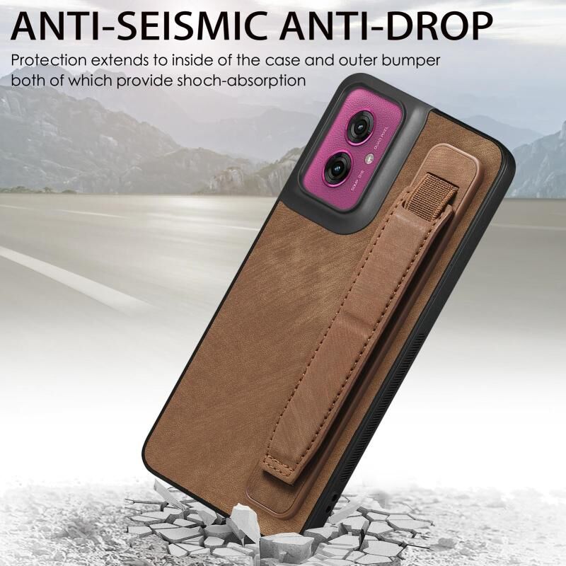 Για Motorola Moto G55 Retro Wristband Holder δέρμα πίσω υπόθεση τηλεφώνου (ρόζ)