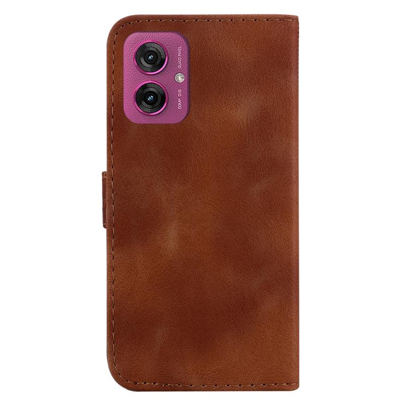 Θήκη τηλεφώνου από δέρμα με ανάγλυφο σχέδιο σε σχήμα επτά για Motorola Moto G55 (Καφέ)