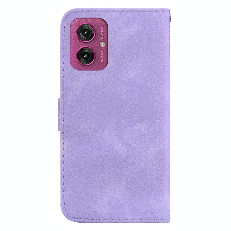 Θήκη τηλεφώνου από δέρμα με ανάγλυφο σχέδιο σε σχήμα επτά για Motorola Moto G55 (Μωβ)