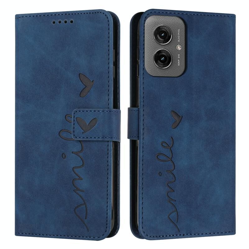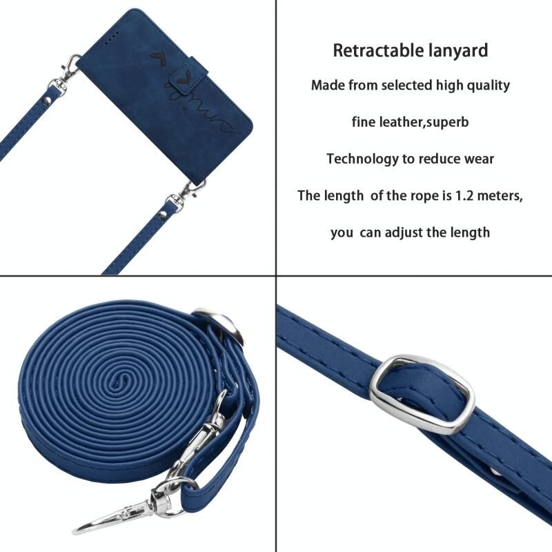 Για Motorola Moto G55 Skin Feel Heart ανάγλυφη δερμάτινη θήκη τηλεφώνου με μακρύ κορδόνι (Μπλε)