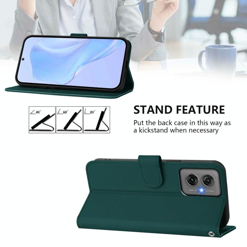 Για το Motorola Moto G55 Skin Feel Solid Color δερμάτινη θήκη τηλεφώνου με κορδόνι (σκούρο πράσινο)
