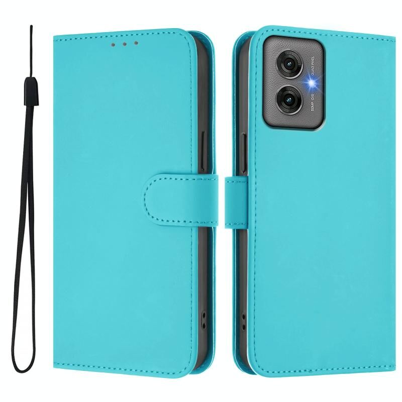 Για το Motorola Moto G55 Skin Feel Solid Color δερμάτινη θήκη τηλεφώνου με κορδόνι (Lake Blue)
