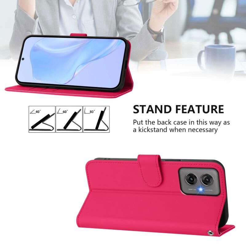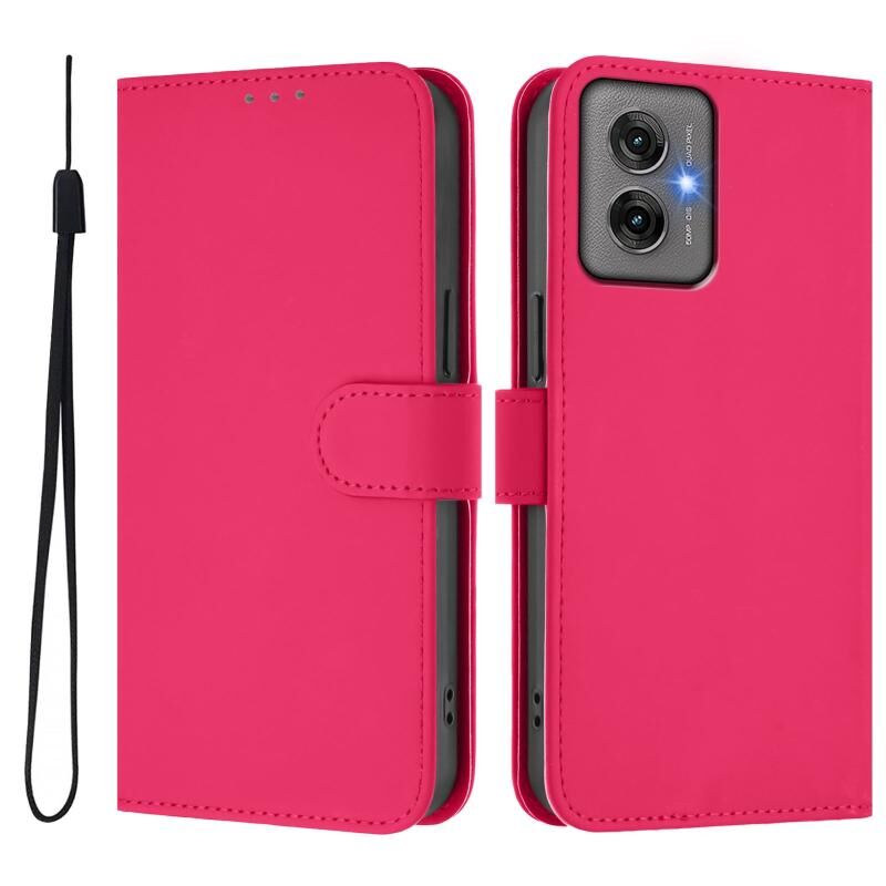 Για το Motorola Moto G55 Skin Feel Solid Color δερμάτινη θήκη τηλεφώνου με κορδόνι (Rose Red)