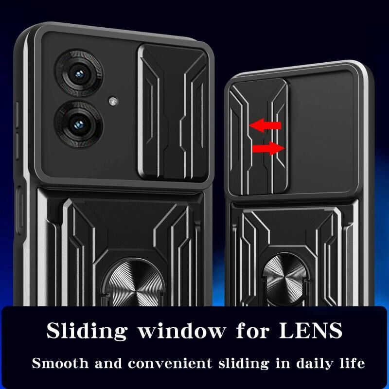 Θήκη κινητού τηλεφώνου για Motorola Moto G55 με συρόμενο προστατευτικό κάμερας Camshield, κατασκευασμένη από TPU+PC με θήκη για κάρτες (Μπλε)