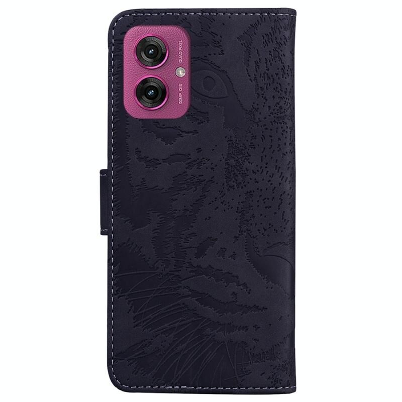 Θήκη τηλεφώνου δερμάτινη με ανάγλυφο μοτίβο τίγρης για Motorola Moto G55 (Μαύρο)