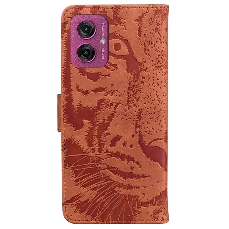 Θήκη τηλεφώνου δερμάτινη με ανάγλυφο μοτίβο τίγρης για Motorola Moto G55 (Μαύρο)