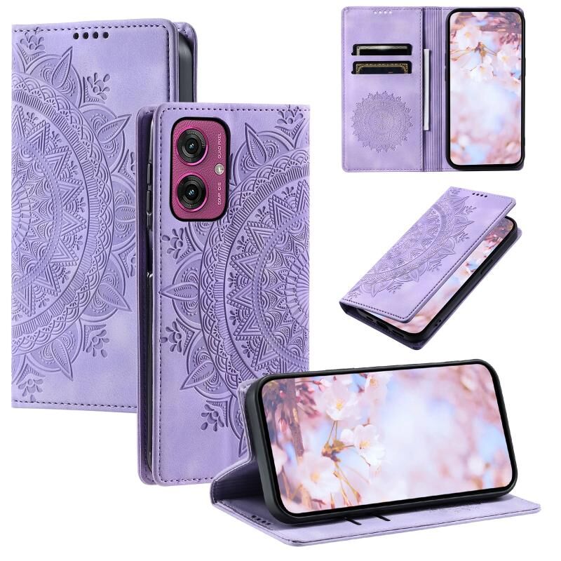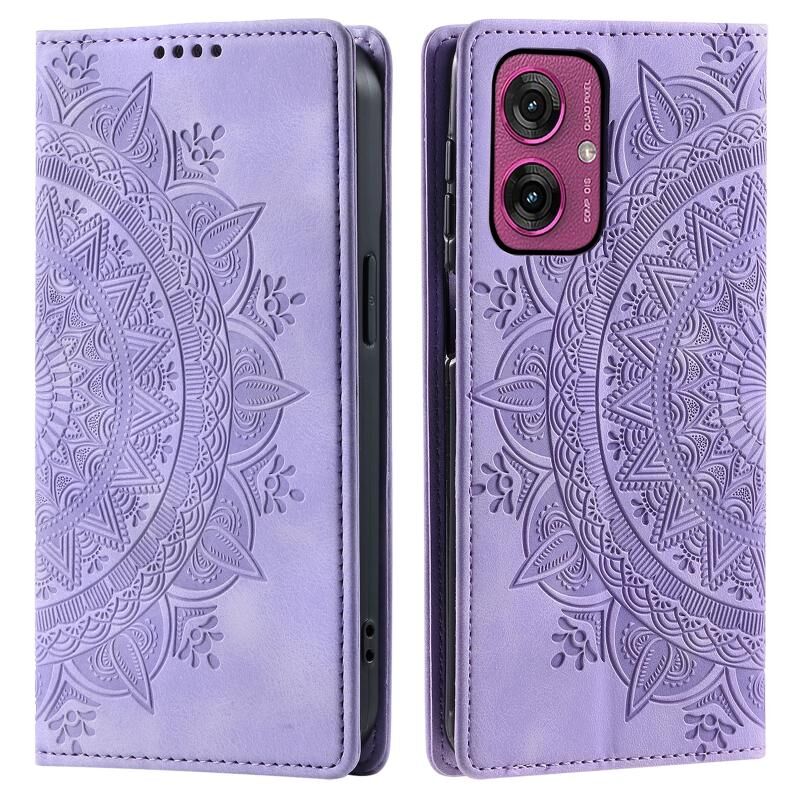 Για Motorola Moto G55 Totem ανάγλυφη μαγνητική δερμάτινη θήκη τηλεφώνου (Μωβ)