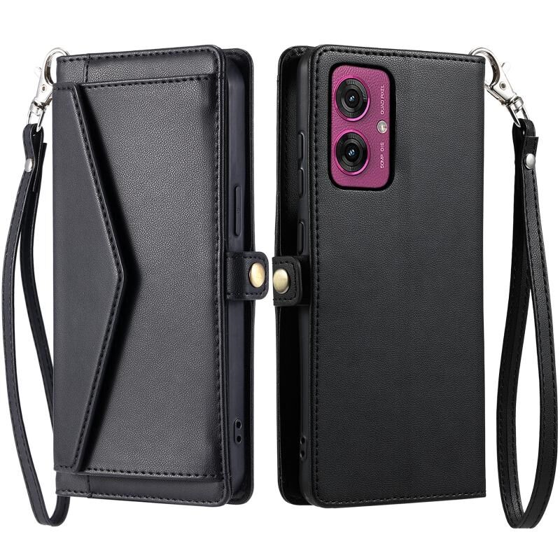 Για Motorola Moto G55 Πορτοφόλι Multi-card Slot Δερμάτινη θήκη τηλεφώνου με κορδόνι (Μαύρο)