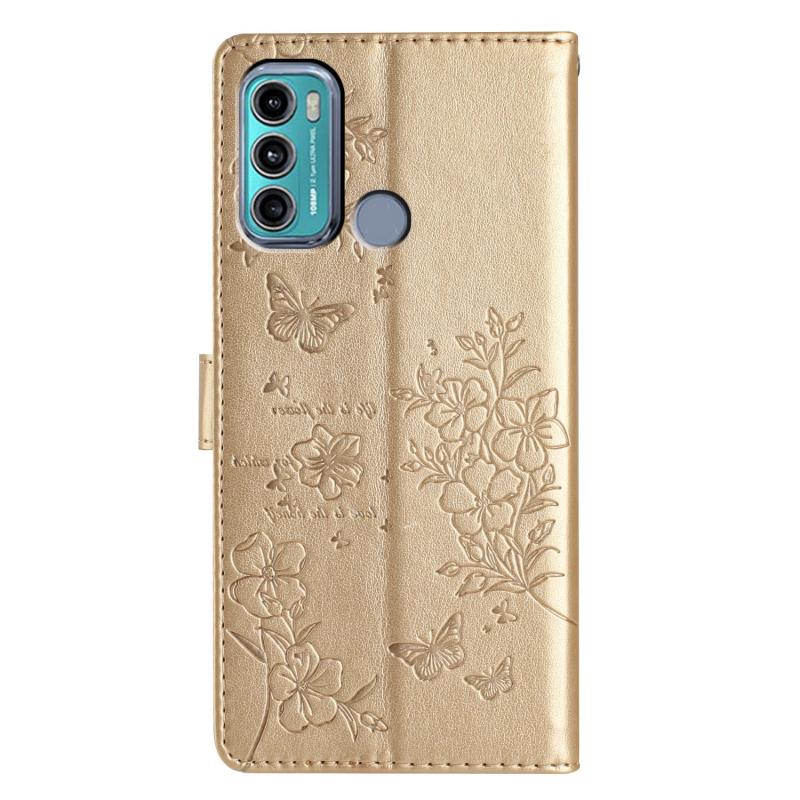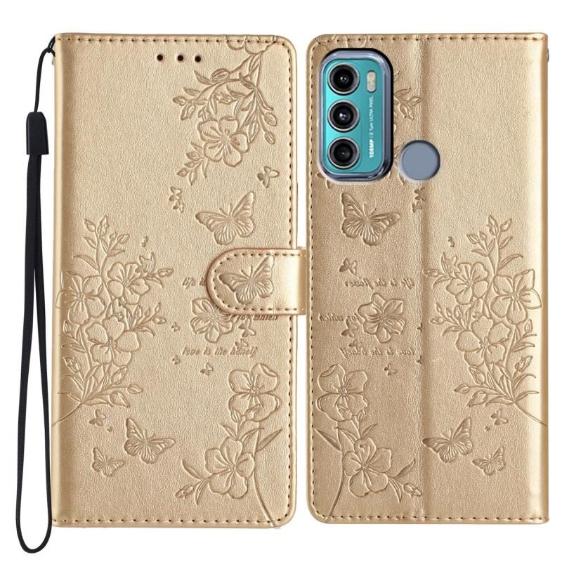 Θήκη τηλεφώνου από δέρμα με σχέδια πεταλούδες και λουλούδια για Motorola Moto G60 4G (Χρυσό)