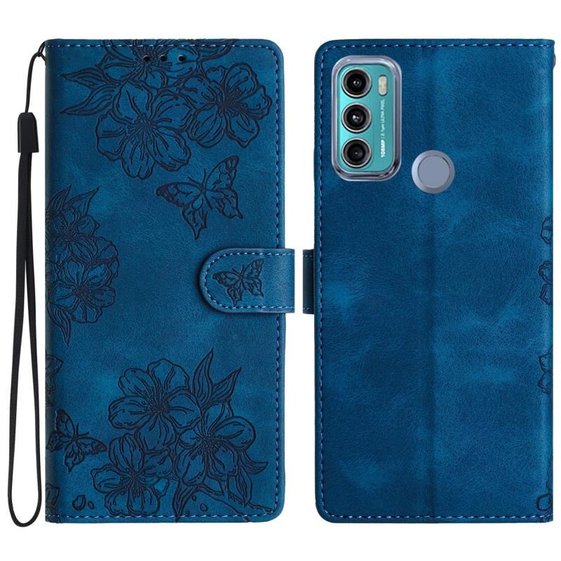 Θήκη κινητού τηλεφώνου Motorola Moto G60 4G Cherry Blossom Butterfly Skin Feel Embossed PU (Κόκκινη)