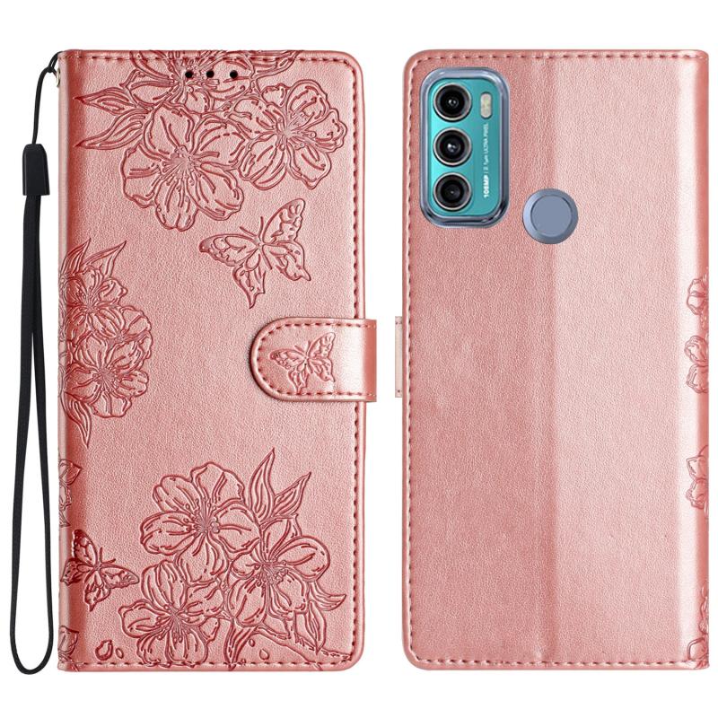 For Motorola Moto G60 4G Cherry Blossom Butterfly Skin Feel Embossed PU Phone Case(Rose Gold)