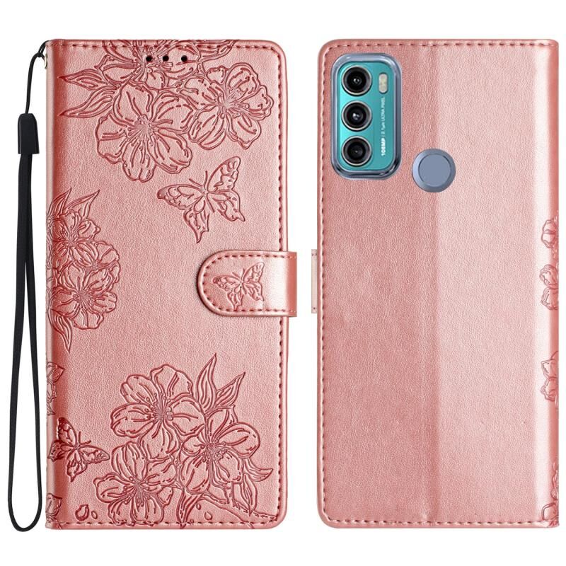 Θήκη κινητού τηλεφώνου Motorola Moto G60 4G Cherry Blossom Butterfly Skin Feel Embossed PU (Κόκκινη)