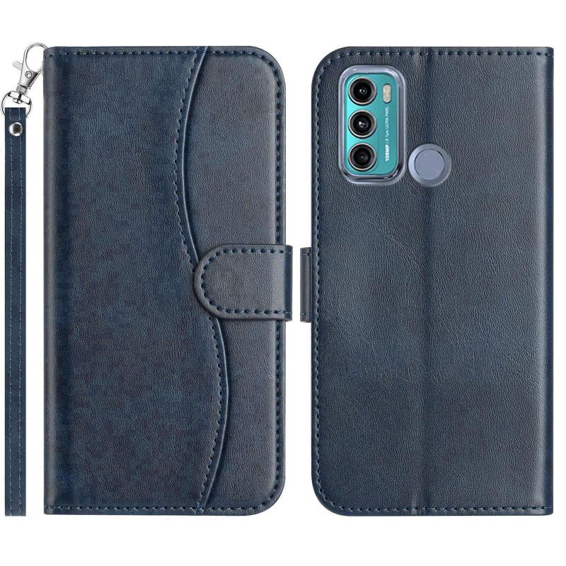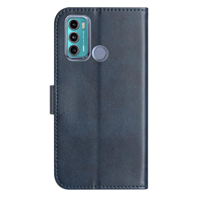 For Motorola Moto G60 Dual-Folded S-shape Leather Phone Case(Navy Blue)