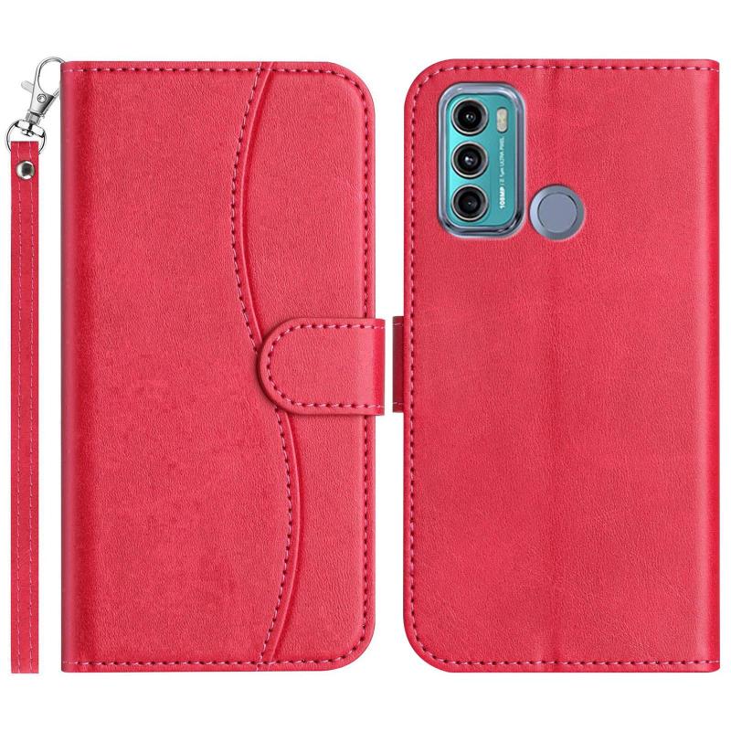 For Motorola Moto G60 Dual-Folded S-shape Leather Phone Case(Rose Red)